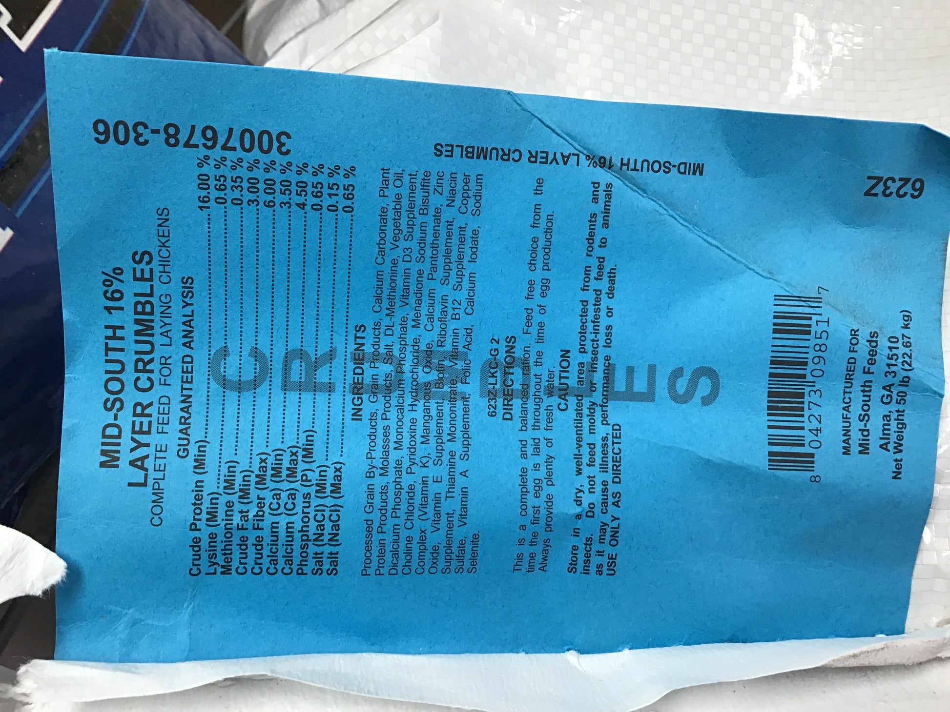 A complete feed for laying chickens.