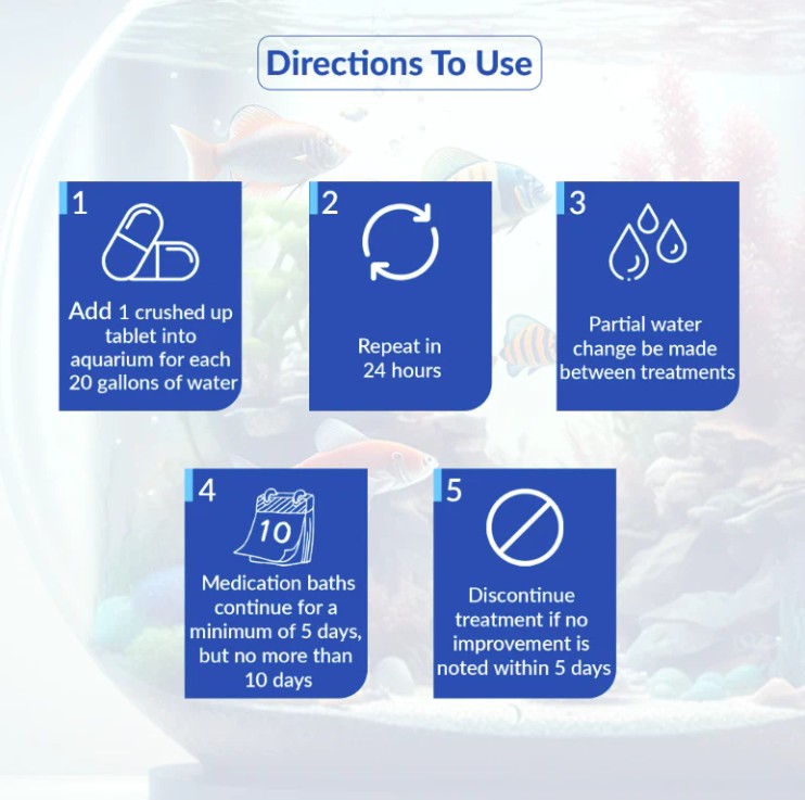 This broad-spectrum aquarium treatment helps promote a healthy aquatic environment by supporting the recovery of ornamental fish experiencing external bacterial infections. It's effective in addressing various bacterial issues, including: