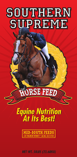 A feed specifically developed for the senior and geriatric horse. It provides a softer, easier to chew and swallow diet. Our formula can be fed with forage, or it can be used as the sole ration for horses that are unable to eat hay or pasture. You may also add water to increase the ease of chewing and swallowing of the feed.