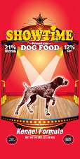 ShowTime 21/12 is formulated by an expert canine nutritionist for kennels and dogs with light to moderate activity levels. ShowTime is formulated from high quality proteins and elevated fat levels to promote proper body functions.